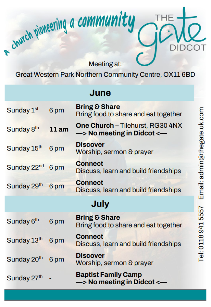 ( We don’t always meet in Didcot on 2nd Sundays as we join with the wider Gate church on ‘One Church Sundays.’)